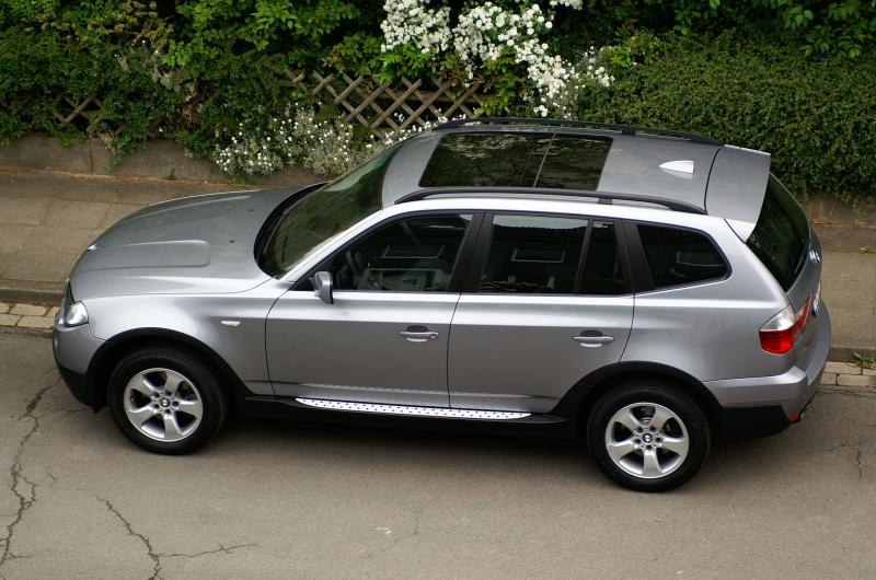 Ein BMW X3 2.0 d 177 PS in silbergrau metallic, Navigation Pro mit Radio Business CD, elektrisch verstell- und beheizbare Sportsitze Leder schwarz mit Lordosestütze (ein Wohl auf meine Lendenwirbelbandscheiben L4/L5), Comfort Paket Plus, 204er Felgen mit 235er Michelin Pilot MXM4 All Season-Reifen, Trittbrettschweller, adaptives Kurvenlicht und Xenonscheinwerfer sowie Reinigungsanlage, Alarmanlage, Dachreling, M-Lenkrad mit Multifunktion und Lenkradheizung, Panorama-Glasdach, Park Distance Control, CD-Wechsler, Sitzheizung Fondsitze, Innen- und Aussenspiegel abblendend, Interieurleisten Titan hell, Modellschriftzugentfall, Mobiltelefonvorbereitung mit Blauzahnschnittstelle und Sprachsteuerung, 4 gebrauchte Winterreifen mit 235er Dunlop Winter Sport auf 112er Felgen habe ich gleich mitgenommen.
