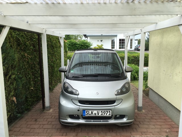 Seit 2012 hat der Kleine ein Carport für sich alleine - die Außenmaße sind smart-like