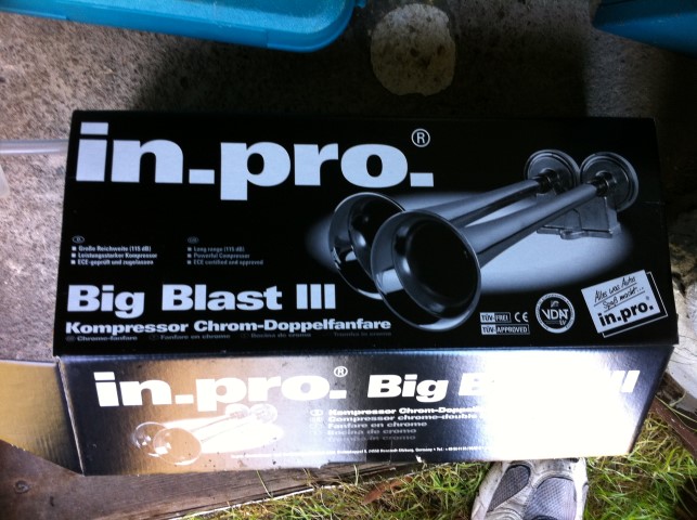 Leider war der Kompressor sehr wetteranfällig und fiel dann ganz aus. Heute ist wieder eine "normale" Hupe drin.