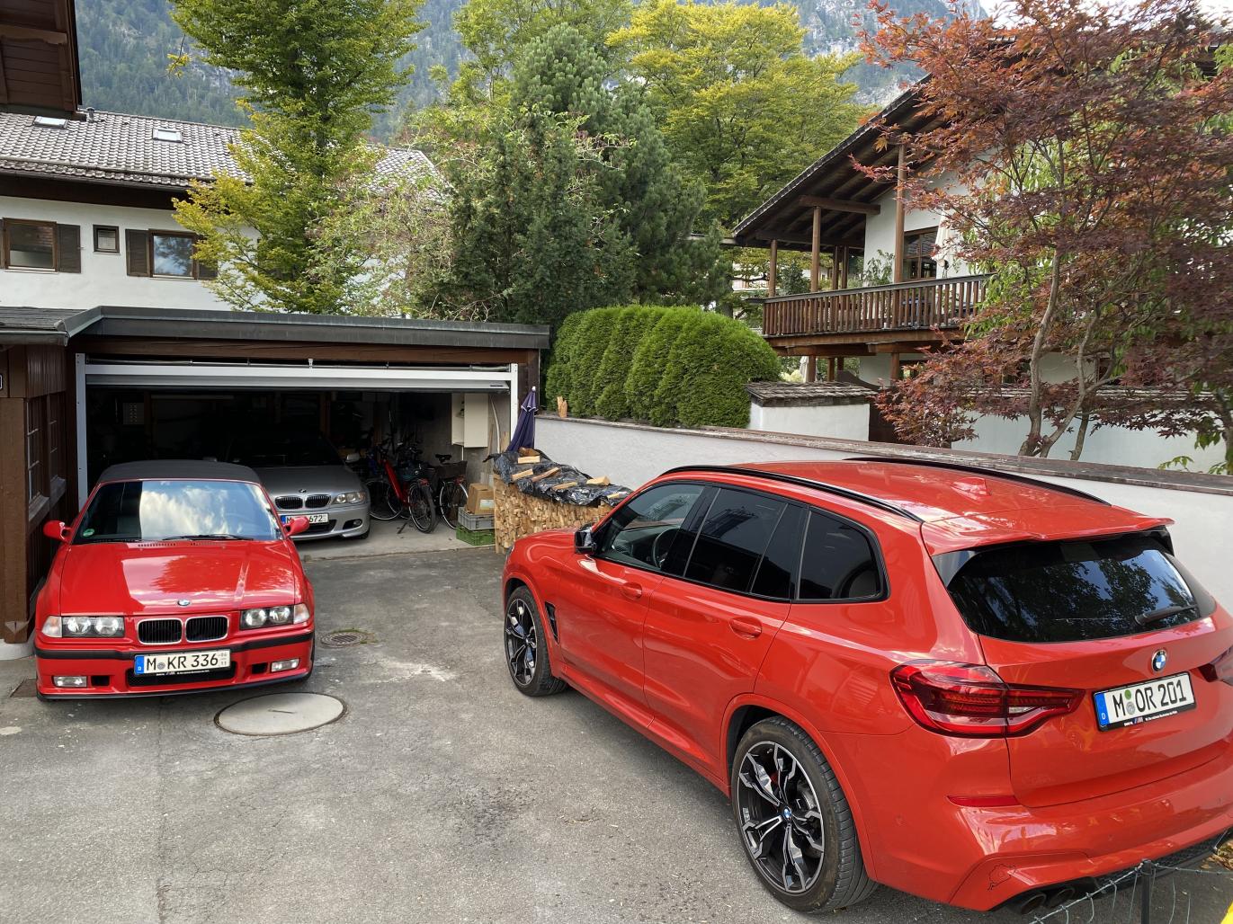Die Beiden Cabrios sind schon eine Halbe Ewigkeit bei uns, der E36(war vor vielen Jahren mein Firmenwagen, günstig aus ner Scheune 2006 bei Aichach gekauft, 1. Hand quasi) hat ca 170tkm drauf, der E46(den hat ein Spetzl hergegeben, weil der Wagen seiner Schwangeren Frau zu sportlich war, für sagenhafte 6000€) 195tkm, der M140i Performance 105tkm(war ein Neuwagen und bis Ende 4.21 mein 2. Firmenwagen) und der X3 aktuell 50tkm, ist mein Firmenwagen seit Ende 4.21. Davor hatte ich auf Saison einen Orange M3 F80 C für den Track.
