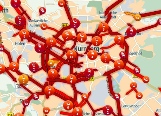 Ja, hier in Nürnberg gab es heute - natürlich plötzlich und völlig unerwartet zu dieser Zeit des Jahres - auch ein paar Schneekrümel und vor allem im gesamten Stadtgebiet spiegelglatte Straßen. Was sich in den Verkehrsmeldungen von TomTom dann so äußert wie im Anhang (Screenshots aktuell von 9:50 Uhr)...