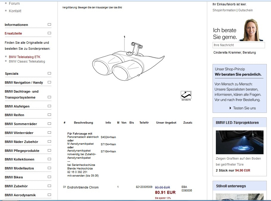 Ich habe mir bei BMW Langer über ETK die ( eigentlich ) passende Auspuffblende für meinen X3 gekauft.