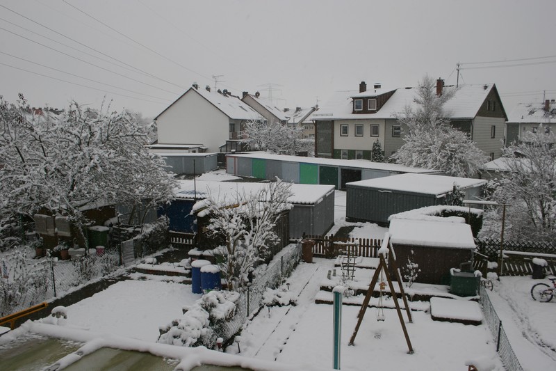 Im Nürnberger Land schneit es seit heute mittag ununterbrochen, erst klitzekleine Krümelchen, dann etwas mehr - jedenfalls so viel, daß draußen schon ca. 5 cm der weißen Pracht 'rumliegen. Und das nicht nur auf einer Stelle, und auch nicht der Länge nach