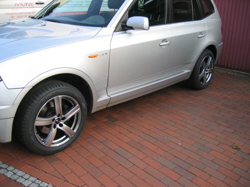 Um eine etwas schöne Optik zu bekommen, kam eine Umrüstung auf 18 Zoll in Betracht. Anfangs hatte ich in Aussicht die BMW Felgen 113 oder 143. Original finde ich irgendwie besser. Da diese aber nur die Standarteinpresstiefe haben, ging ich auf Zubehörfelgen. Am besten 8 x 18 ET 30. Bei der ET könnte ich mir dann die jetzigen Spurverbreiterungen sparen