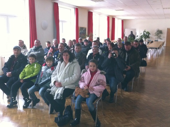 Rückfahrt mit Gruppenfoto in einem Autohaus und Abend-Grill-Buffet und danach: Ski und Rodel gut