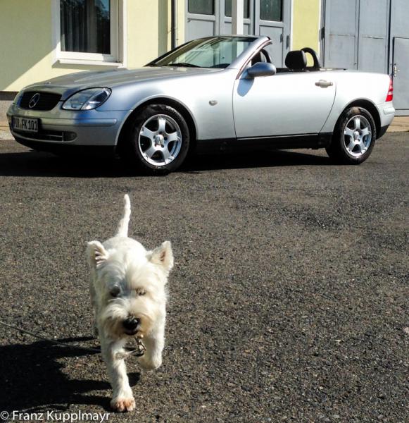 Weil heute schönes Wetter ist und bei uns in Sachsen ca. 24°C herrschen, habe ich mal wieder unseren Drittwagen, den 1998er MB SLK 200 rausgeholt.
