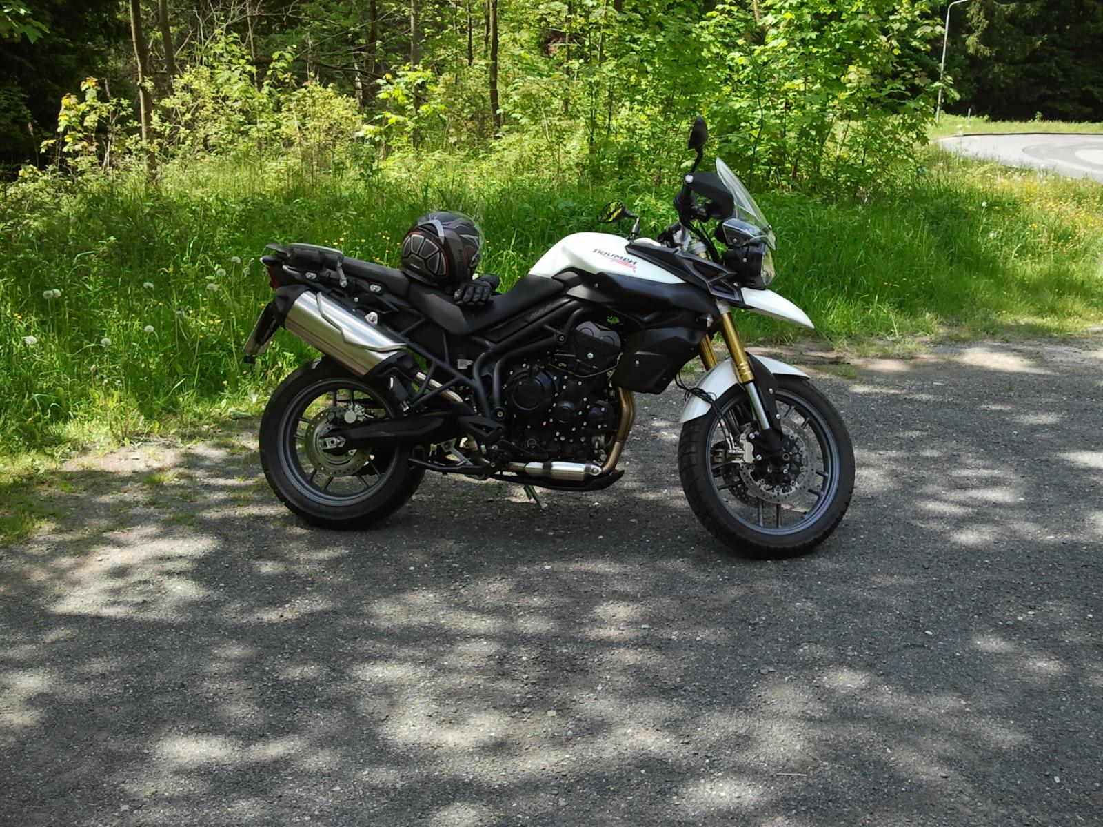 Triumph Tiger 800 ABS aus 2013, 95 Pferdchen und sehr gut zum bummeln über die Landstraßen oder Kurven-Räubern im Harz.