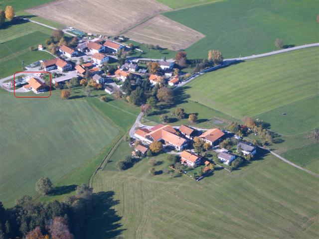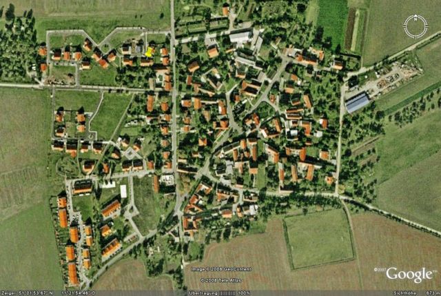 Nachdem ihr alles so schöne Bilder von eurer Heimat eingestellt habt (warum fahren wir deutschen eigentlich immer ins Ausland in den Urlaub), möchte ich euch mal zeigen in welcher Pampa Familie Weber, nebst blauer Rosi wohnt. Meinem Nachbarn, der kürzlich eine Ballonfahrt unternahm sei Dank. Ich hab das Haus mal Rot umrahmt.