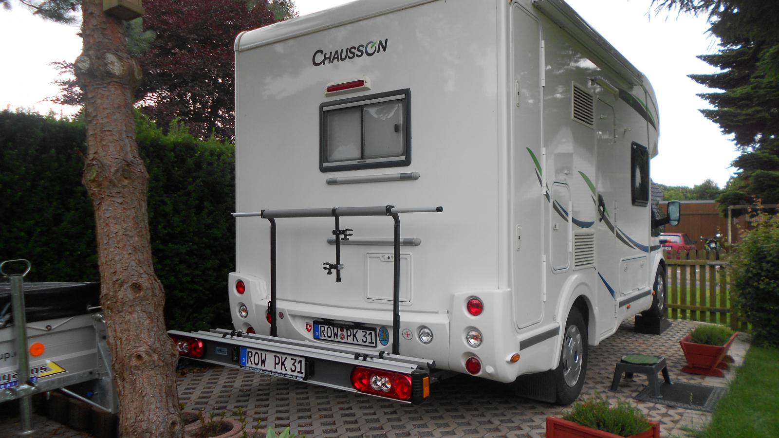 Nachdem sich meine liebe Frau nun letztendlich doch mit ihrem Wunsch nach einen E-Bike durchgesetzt hat und ich gemerkt habe, dass die Dinger zwar nicht bedeutend schwerer als unsere alten Drahtesel sind, aber doch bedeutend unhandlicher was das Hinaufwuchten auf den Fahrradträger am WoMo angeht, habe ich mich zum einer Fahrradbühne entschlossen. Ich traue den Fahrradträgern an der WoMo-Rückwand eh nicht auf Dauer wenn sie mit über 50 kg belastet sind und schon gar nicht bei schlechten Wegstrecken.