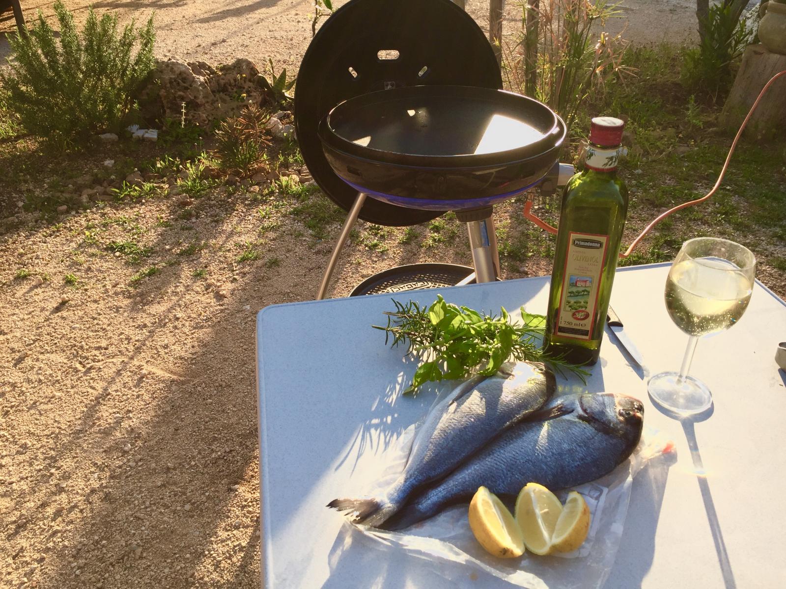 .... und jetzt gibt's Abendessen. Fangfrisch von heute.