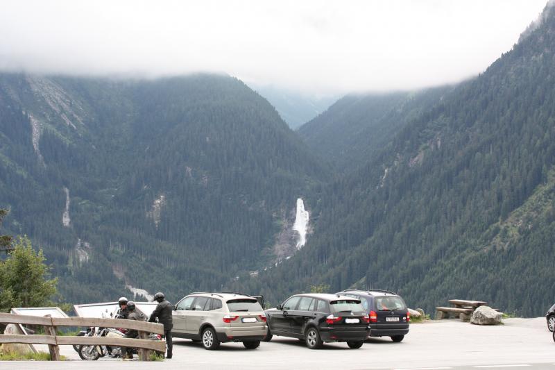 Das erste Bild zeigt einen schönen Parkplatz mit Blick auf die Krimmler Wasserfälle an der Mautstraße vom Zillertal über den Gerlospass nach Krimml. An den Wasserfällen selbst "tanzte der Bär", d.h. Touristen ohne Ende mit allem was dazu gehört, aber allemal sehenswert. Dieser Ausflug bot sich bei bedecktem Himmel förmlich an - und vielen anderen eben auch. Die gute Gesellschaft auf dem Parkplatz ist purer Zufall.