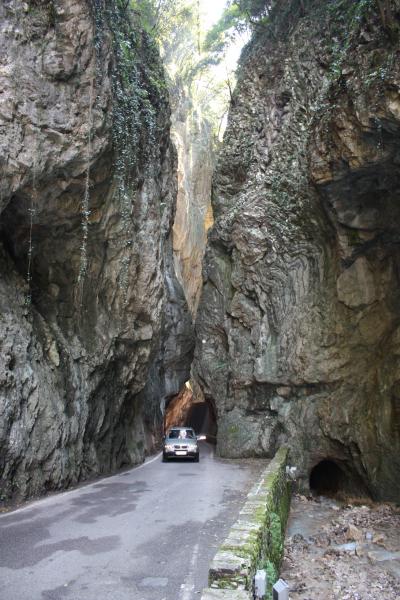 Das dritte Bild entstand an einer atemberaubenden Straße, die etwas südlich von Limone vom Gardasee steil und eng bergauf nach Pieve führt. Solch eine Straße haben wir noch nicht erlebt und wir hatten wirklich Sorge um Blech und Spiegel: Gegenverkehr nicht möglich, man mogelt sich z.T. nach einigen dutzenden Metern im Rückwärtsgang schließlich aneinander vorbei und schafft es irgendwie nach oben. Mit einem VW-Bus oder Vito möchte ich dort nie fahren müssen. Das Bild zeigt den Xi an einer grandiosen Stelle, unten passt ein Auto durch, oben wohl kaum ein Fahrrad, auch wenn es fliegen könnte.