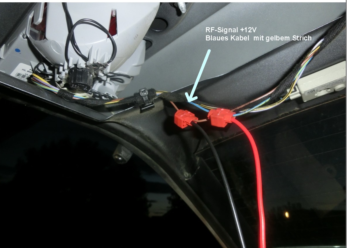 Bei meinem X3 war im Kofferraumdeckel das +12V Rückfahrsignal das Blaue Kabel mit dem gelben Strich.