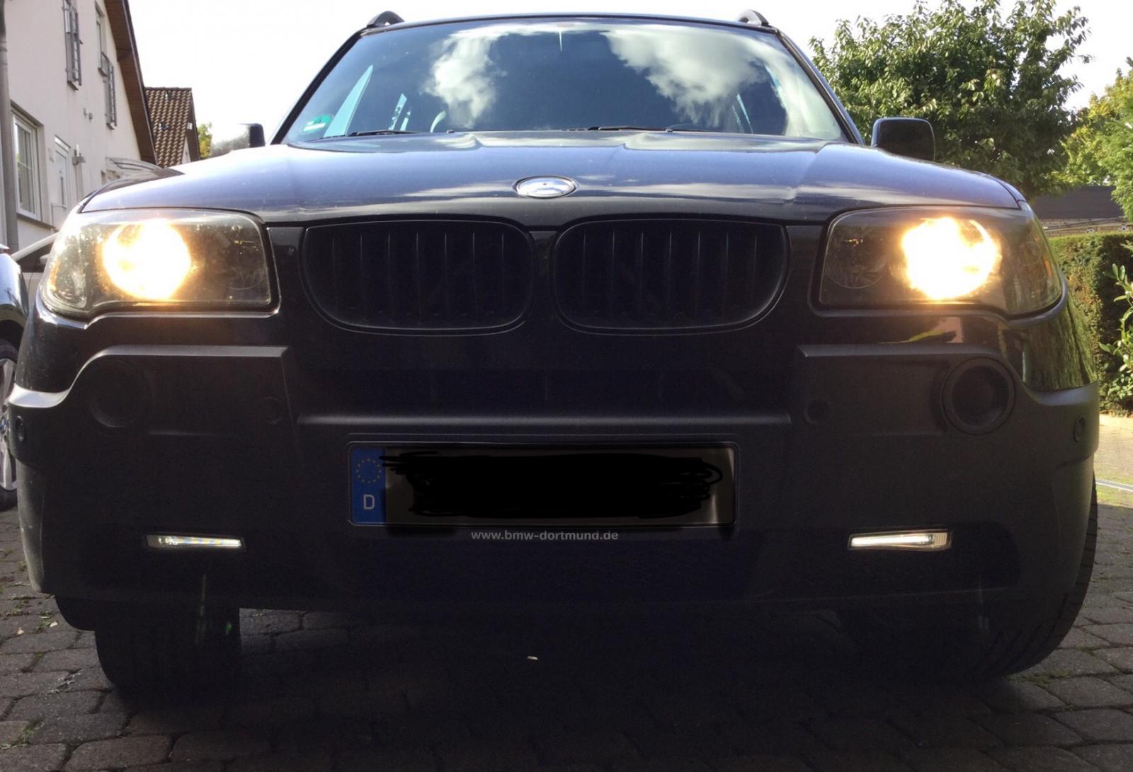nachdem ich hier viel gelesen und gelernt habe, möchte ich auch mal etwas zurückgeben. Mein X3 2.0d von 2004 hat fast gar keine Extras, also auch kein Xenonlicht. Lange habe ich nach einer dezenten Lösung gesucht ein Tagfahrlich bei mir einzuschalten bzw. einzubauen. Lichtmodul mit Tagfahrlicht über Standlicht war nicht zufriedenstellend, da die Standlichter zu schwach leuchten, mit Carly könnte ich nur die US Sidemarker anstellen, die funktionieren aber nur wenn ich das Standlicht manuell einschalte. Bei Osram bin ich jetzt fündig geworden, die Tagfahrlichter sehen nicht so prollig und billig aus und lassen sich recht einfach verbauen. Ich habe als echter Laie ca. 3 Stunden gebraucht bis alles funktionierte. Die Lichter sind standardmäßig eingeschaltet und bei Abblendlicht um 50% gedimmt. Anbei ein paar Bilder. Für Fragen stehe ich zur Verfügung.