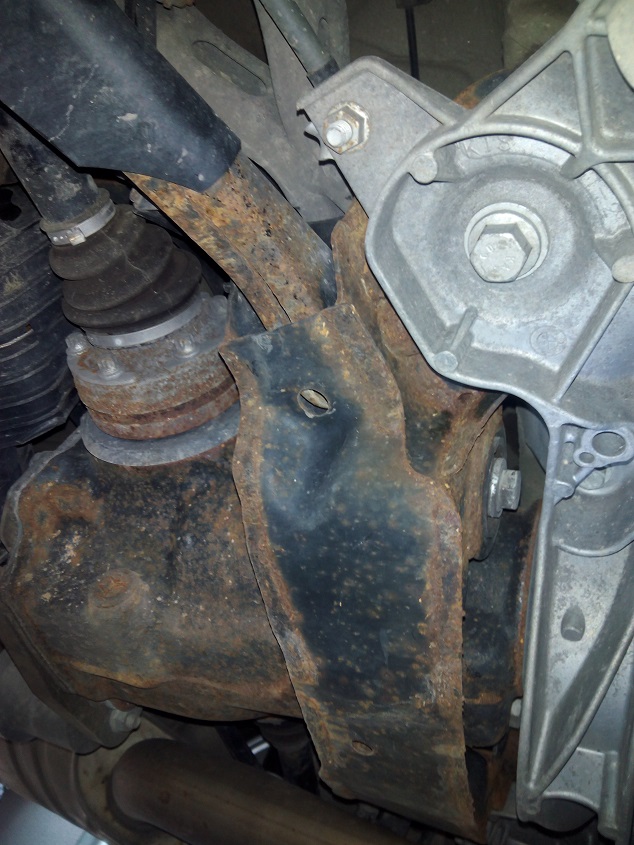 Die Sicherungsmutter, welche die Bundschraube des inneren Traggelenkes sichert ist gebrochen, das Gewinde der Bundschraube hat ein Langloch nun in den Achsträger gefräst.