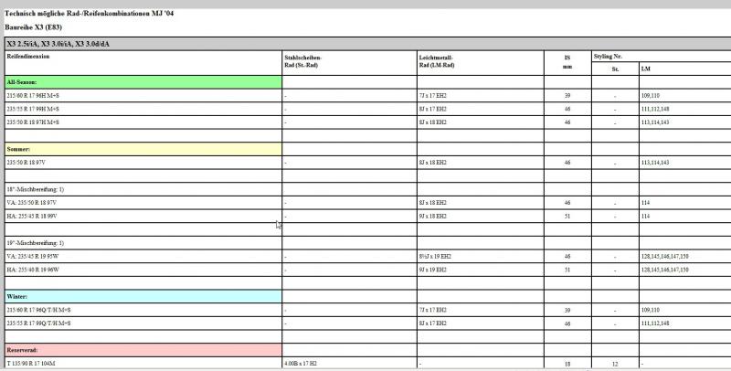 Diese Rad/Reifenkombinationen (von BMW freigegeben) entsprechen ja den Eintragungen in der CoC bzw. im Brief.