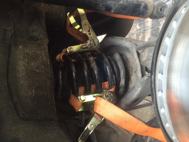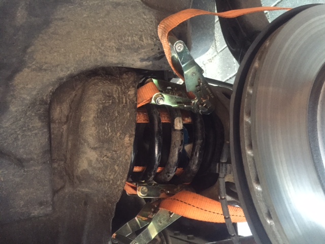 ich habe letztes WE die Federn aus- und wieder eingebaut um die Federunterlage oben zu verstärken. Dazu habe ich die "Forumsmethode" mit dem Wagenheber verfeinert, indem ich vor dem Lösen des Stossdämpfers die Feder mit zwei Spanngurten in ihrem zusammengepressten Zustand fixiert habe. Die Spanngurte konnte ich mit ein wenig Gefummel um vier Windungen der Feder legen. Ich habe schmale Spanngurte mit Ratsche verwendet, so dass ich gut Druck auf die Feder ausüben konnte. Dadurch hat sich der Weg um den ich die Achse nach unten drücken muss natürlich deutlich verringert.Bei vielen Autos ist vergessen worden alle Räder mit dem Motor zu verbinden.Kommentar