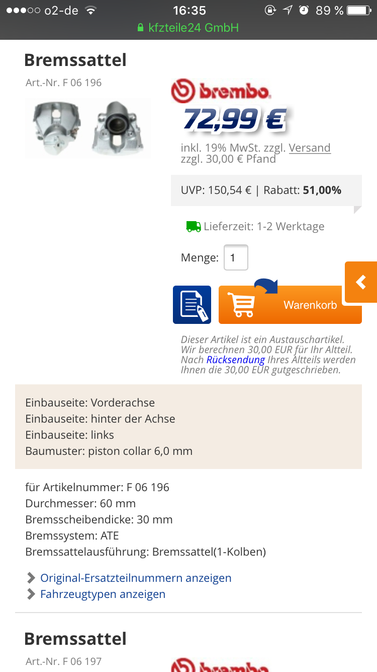 Hab im Netz Brembo Bremssättel für 74€ das Stück gefunden und ATE für 88€ beide sind Neu.