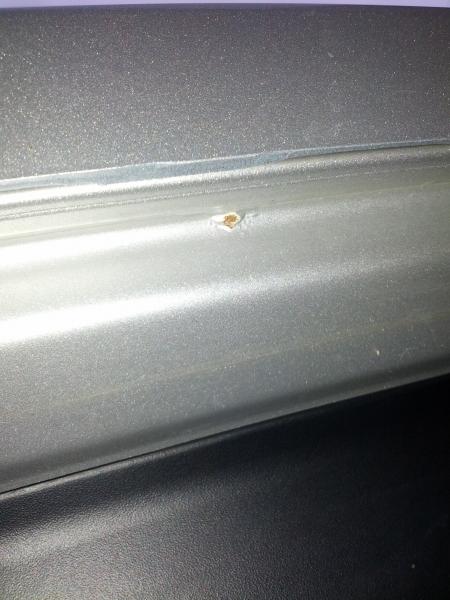 beim Trockenwischen nach der letzten Anlagenwäsche habe ich doch tatsächlich Rostpickel an der Heckklappe gefunden (unten an den Ablauflöchern).