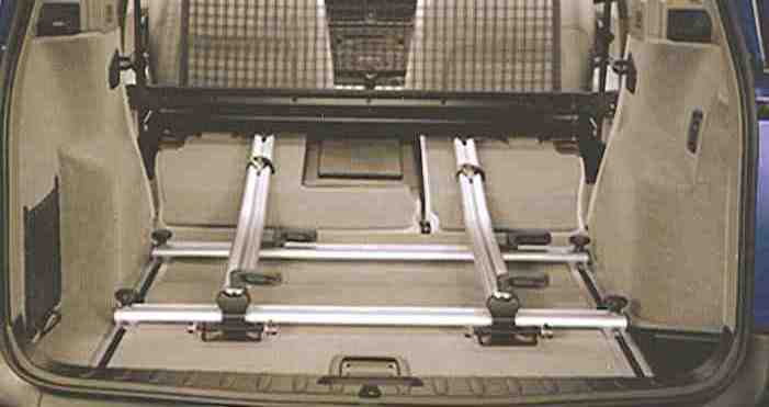 Nach dem Einbau der Innenhalterung muss ich doch noch mal einen Kommentar schreiben: obwohl die Maße meines Rennrades kleiner als die in der Montageanleitung vorgegeben sind, passt das Fahrrad so gerade mal in den Innenraum. Die Quertraversen mußten so weit wie nur irgendwie möglich im Innenraum besfestigt werden, damit die Kofferraumklappe noch zuging. Als Folge hiervon ist die (von hinten aus gesehene) 2. Fahrradführungsschiene nicht mehr ganz so fest auf der Quertraverse zu montieren: die Biegung der Schiene reicht nicht aus, um genau auf den umgeklappten Rücksitz zu passen. Aber es scheint mir doch haltbar genug zu sein. Dadurch dass die Schiene weit nach hinten mußte, kann allerdings das Gepäcksraumtrennnetz nicht mehr hinter den Vordersitzen (wie auf dem Bild oben zu sehen) befestigt werden. Zusammengefasst: irgendwie ging es doch gegen Ende, aber sicherlich nicht optimal.