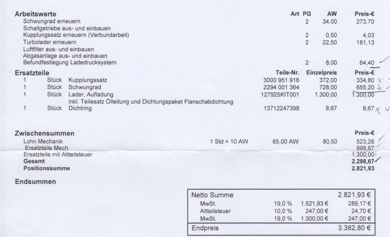 Wenn ich das richtig lese, sind es 10% auf 19% MwSt. vom Nettopreis des Turboladers.