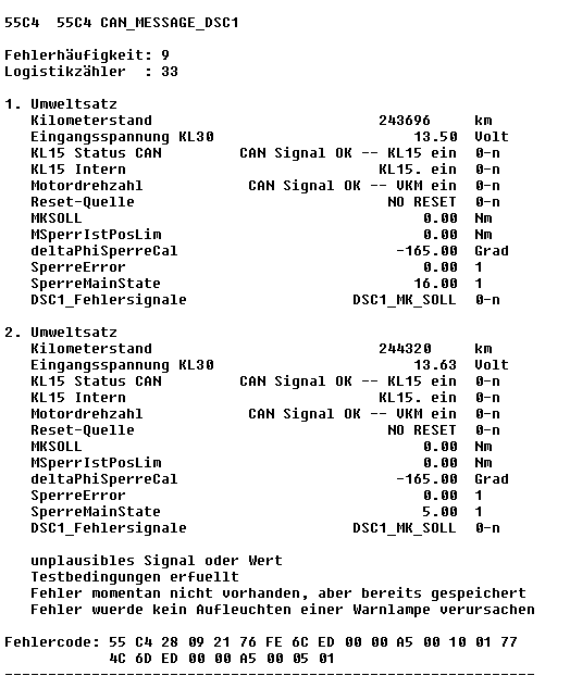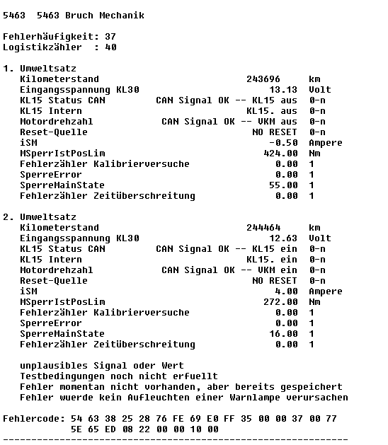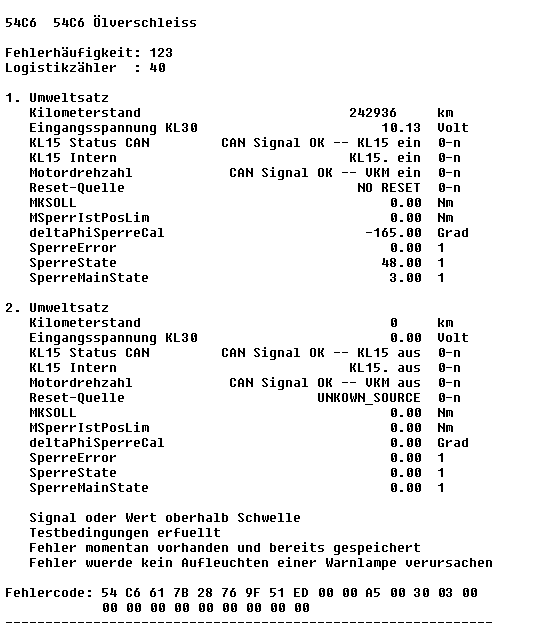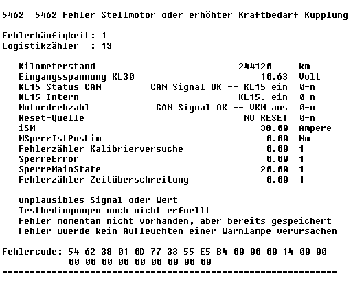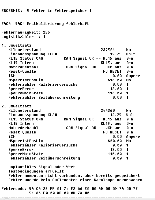 Daraufhin hab ich mir ein Interfacekabel und die Auslesesoftware (das ganze hat ca. 85€ gekostet) besorgt und Fehler Ausgelesen die ich hier jetzt Einstelle.