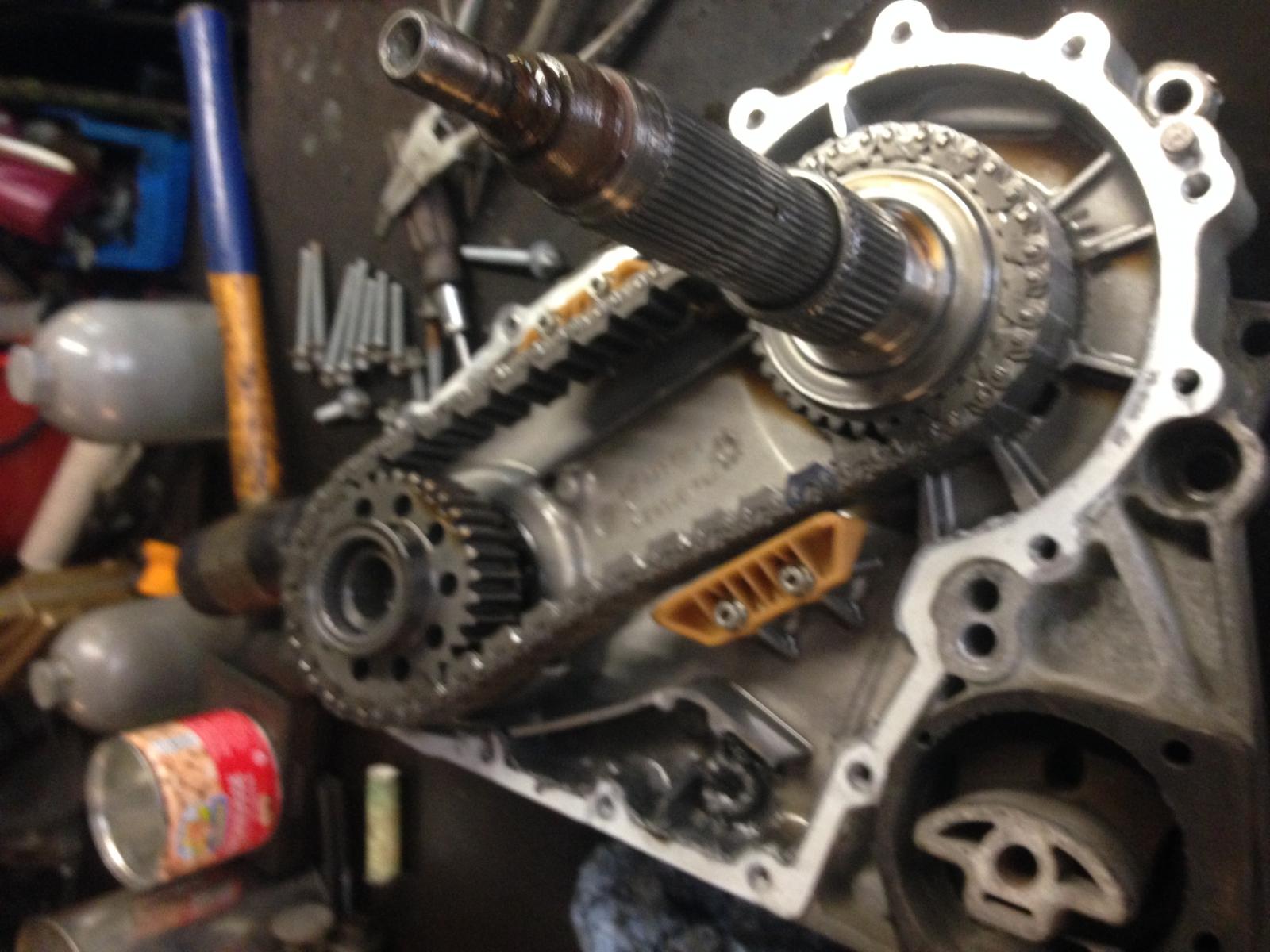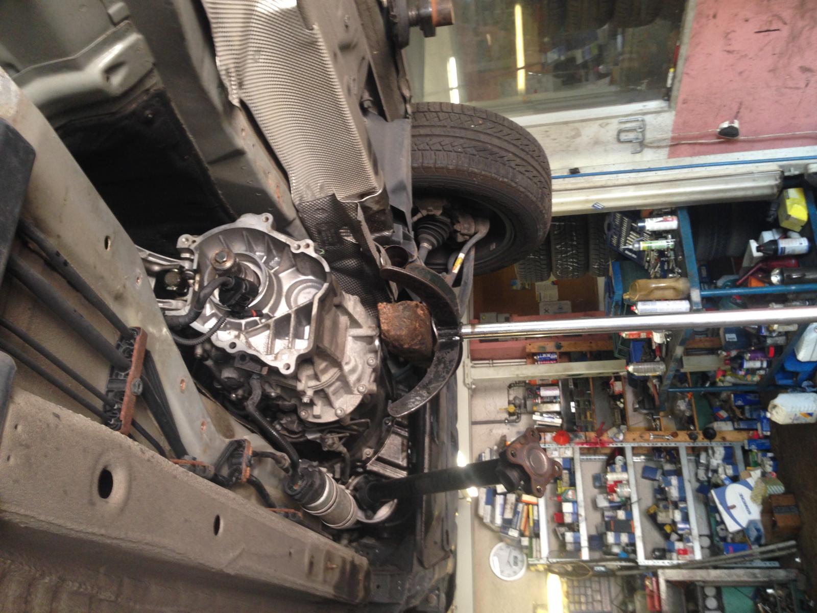 So sieht das Ganze aus, nachdem vordere und hintere Kardanwelle vom VTG abgeschraubt, Halterung vom vtg ab und das vtg selber vom Getriebe runter genommen wurde.