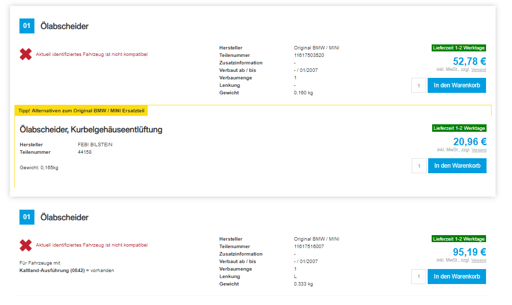 ich wollte nach einem Tipp bezüglich Ölverbrauch mal meine KGE tauschen. Das Fahrzeug hat 180.000km und das wäre dann wohl der erste Tausch der KGE. Jetzt wollte ich im BMW Ersatzteilekatalog nachschauen und mir mein Teil bestellen. Jetzt gibt mir BMW an dass die KGE für mein Fahrzeug nicht kompatibel wäre. Habe ich keine KGE? Müsste ich ja eigentlich haben. Wenn ja welche brauche ich dann und welche Teile müsste ich denn vorsorglich mit ordern die beim Austausch in der Regel kaputt gehen?
