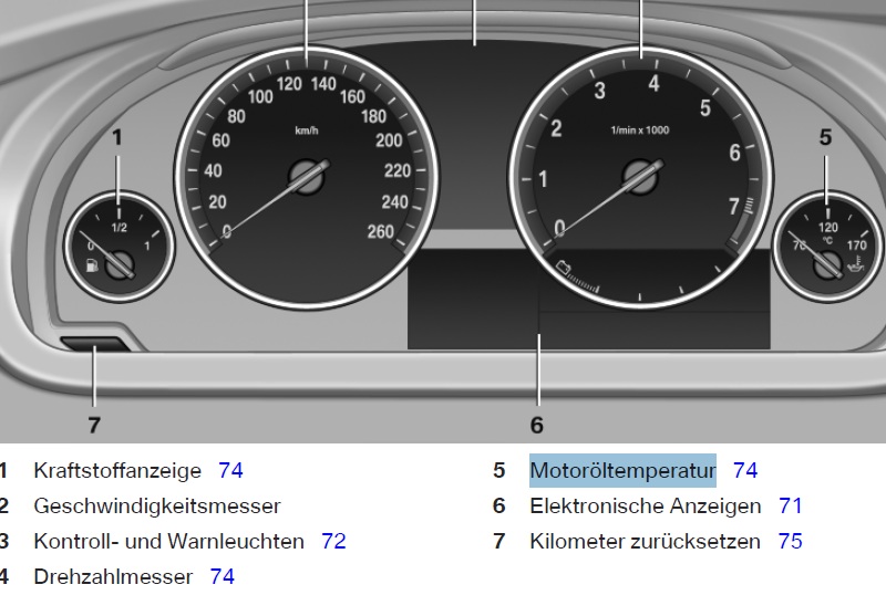 Im F25 2.0d findet man nur eine Kühlwassertemperaturanzeige. Die Aussage dieses Instruments als Gradmesser für einen betriebswarmen Motor ist allerdings fragwürdig. Als Anhalt nehme ich grob 20 Kilometer für den 4 Zyl Diesel, beim 6 Zylinder würde ich 5 - 10 km drauf packen. Beim 3,0 Biturbo habe ich eine echte Öltemperaturanzeige, hier laufen schonmal 15 - 20 km durch bis ich die 80 Grad-Marke passiert habe, und das als Benziner, die ja schneller auf Temperatur kommen.