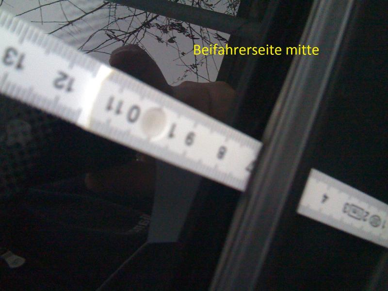 Gemessen SW-Fahrerseite an der Spitze mittig 8cm oberhalb der Kunststoffverkleidung