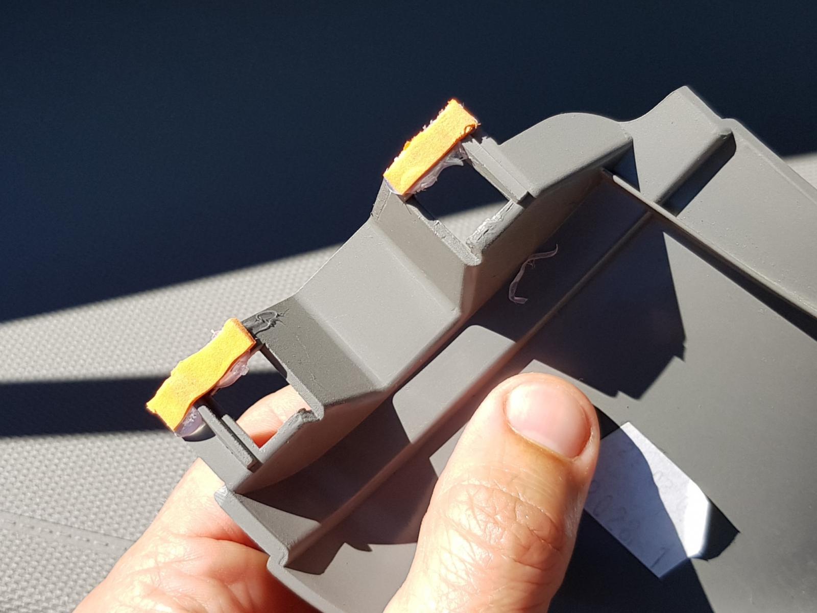 Ich hab dann einfach jeweils zwei kleine Stückchen Moosgummi aufgeklebt, das ganze wieder montiert