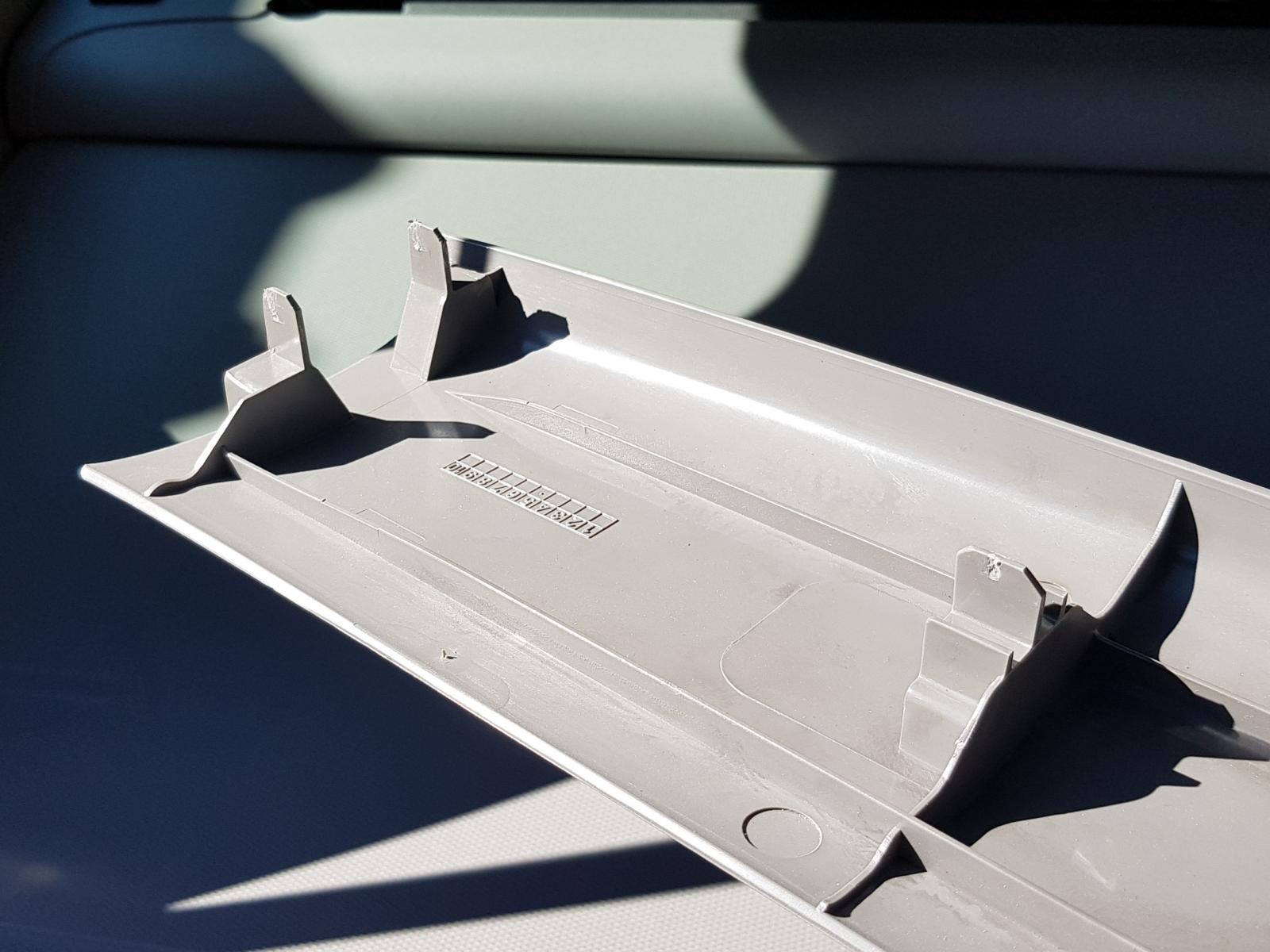 Die Verkleidungsteile sind einfach mit flachen Fortsätzen in Metallklammern gesteckt und lassen sich einfach abziehen. Erst das Mittelteil, das hat an den Enden jeweils zwei Klips und dann noch ein paar einzelne: