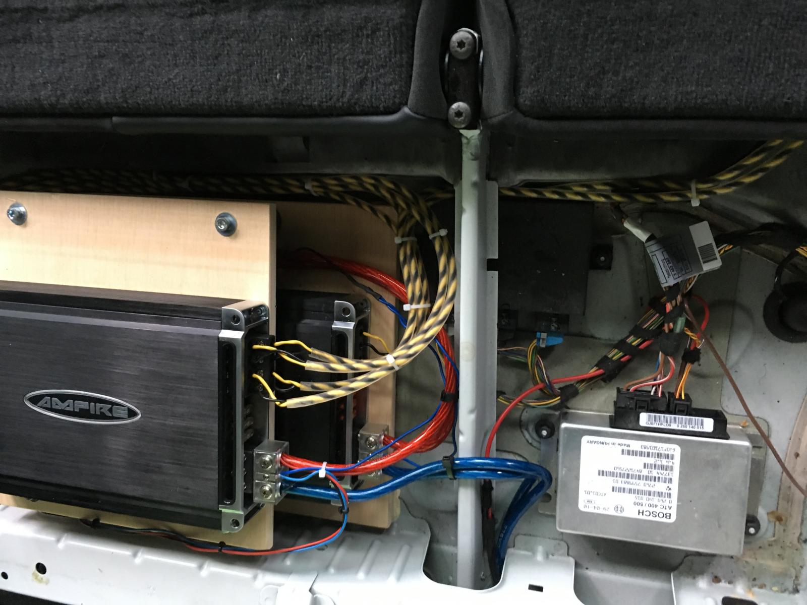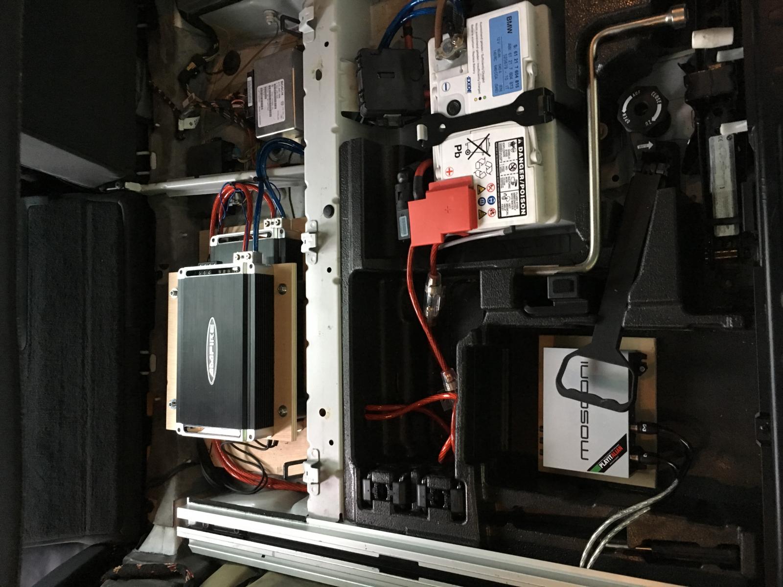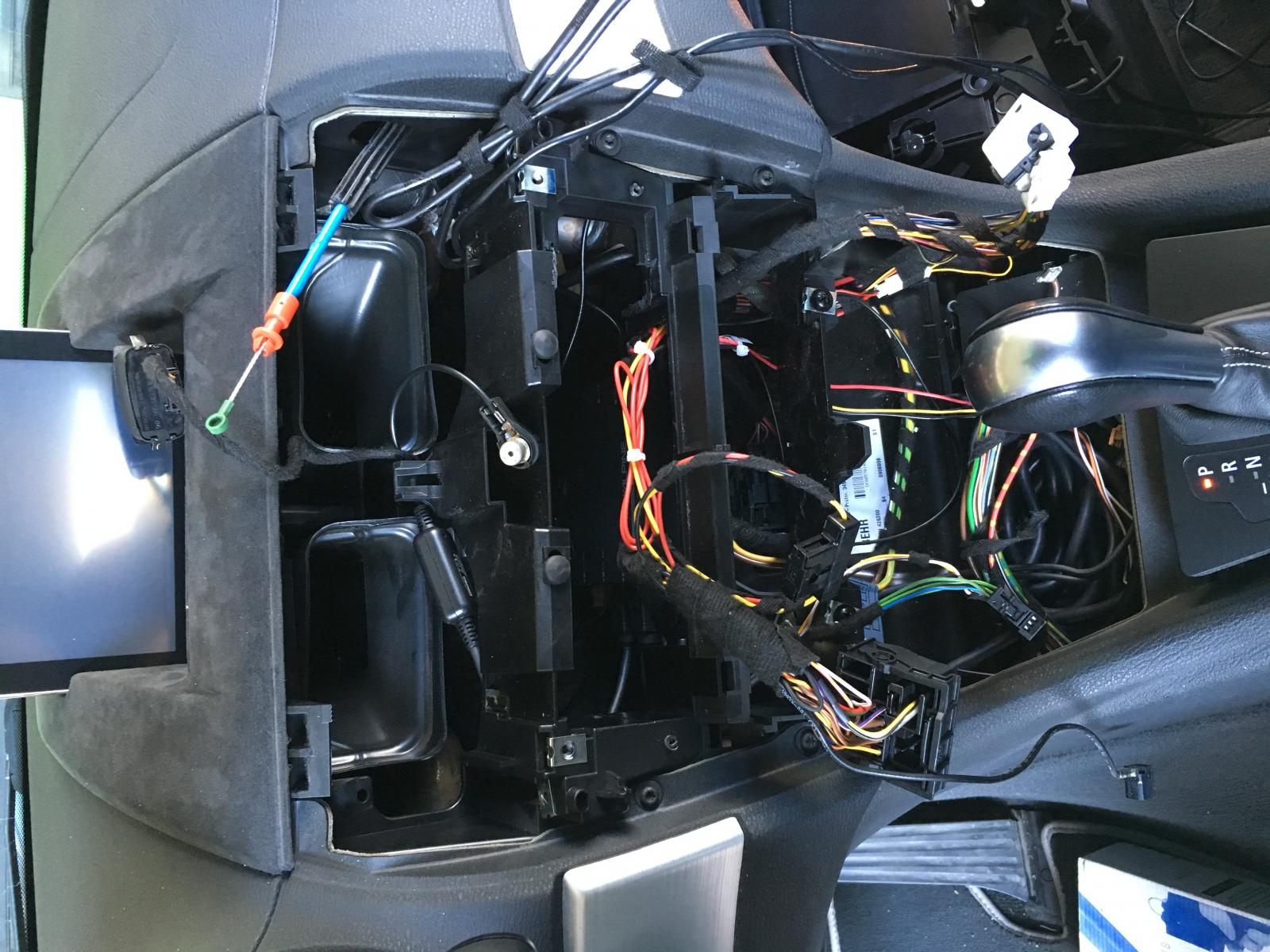 wie schon im Begrüßungsfred angesprochen bekommt mein X ein Hifi Upgrade bei dem die Vorderen Lautsprecher gegen Gladen Extreme getauscht werden . Angefangen hab ich mit dem Ausbau des Alpine Radios nicht weil das Radio schlecht war sondern ich einfach mit der Optik des Din Adapters nich wirklich klar kam . Also hab ich mein Orginal BMW Buisness CD wieder eingebaut und in dem Zuge auch gleich den Kabelsalat hinterm Radio versucht etwas zu Ordnen . Da ich ja nun keine Cinch Buchsen mehr zu Verfügung habe musste ein DSP einziehen der auch gleich einen High/Low Adapter in sich trägt hier hab ich auf einen Mosconi 4to6 zurückgegriffen der nicht ganz Billig ist aber dafür reichlich Möglichkeiten bietet. Jetzt hab ich Euch erstmal 2 Bildchen vom Zerlegten Auto und werde berichten wenns Weitergeht .