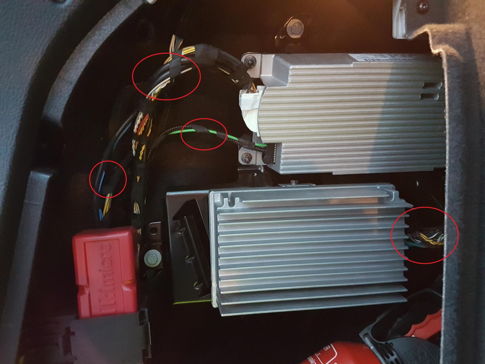 Wenn ich im Kofferraum links (Fahrerseite) die Verkleidung abnehme sehe ich auch ein haufen Kabel und mein Gefühl sagt mir, da ist bestimmt auch das Signal und Remote mit dabei.