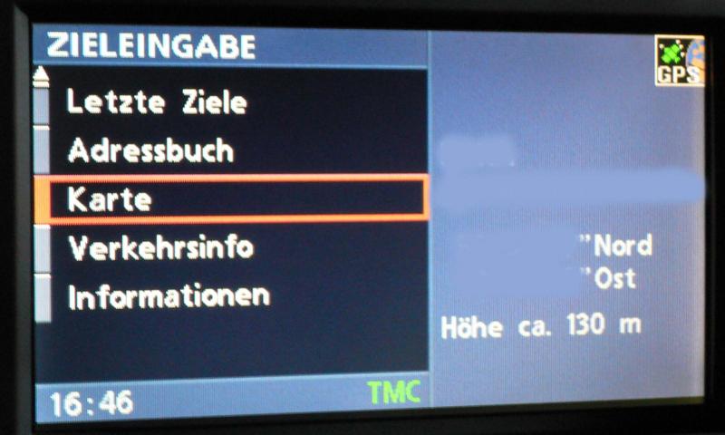 EDIT2: Danach musst Du im Popupmenü (Drehknopf Drücken) auf "Zieleingabe" dann Knopf drehen bis "Karte" erscheint und den Punkt auswählen.