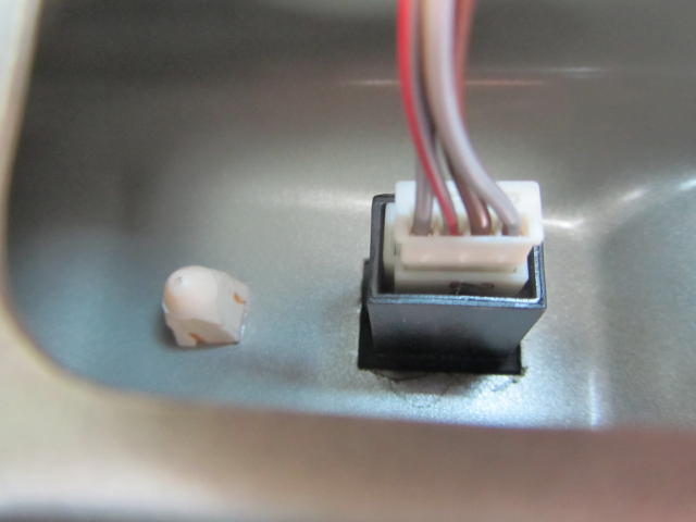 ich habe das kabel vorsichtig "diagonal" im Kunststoff eingebohrt. (sieht man rechts vom Widerstand),..