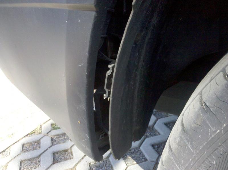 4. Schritt: Im Radkasten je beide unteren Schrauben mit 8er Schlüssel entfernen und die Radschale über den Rand ziehen um die 3 Schrauben darunter zu entfernen