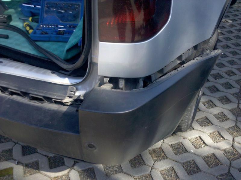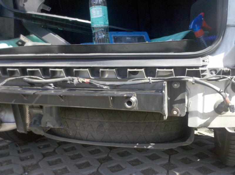 1. Schritt: Unter der Heckstoßstange zwei Plastemutter mit 10er Steckschlüssel lößen